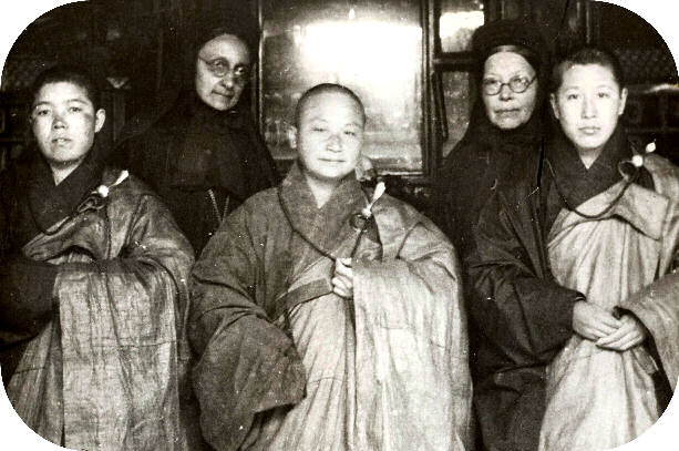 Mère Clara à Yangshow avec des bonzesses en 1950 (détail)