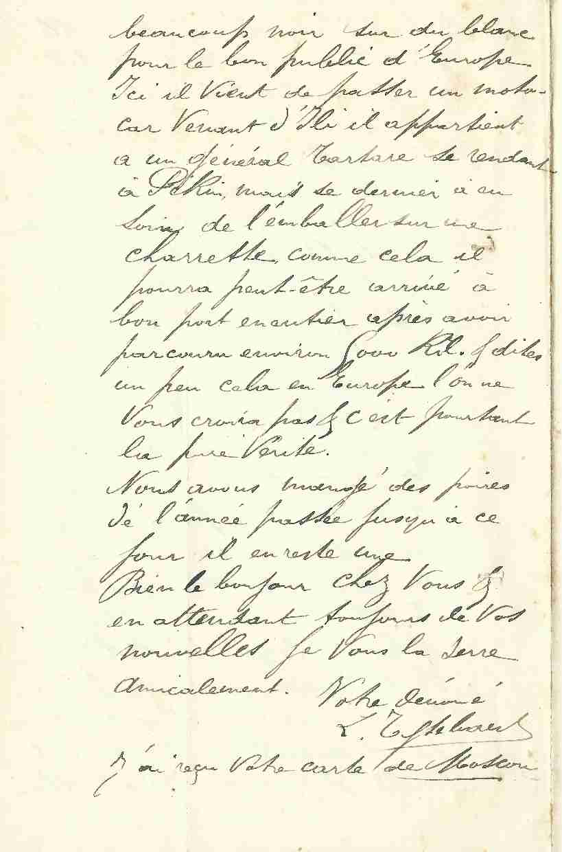 LETTRE de TYSEBAERT à MULLER - Lanchow 20 juillet 1907